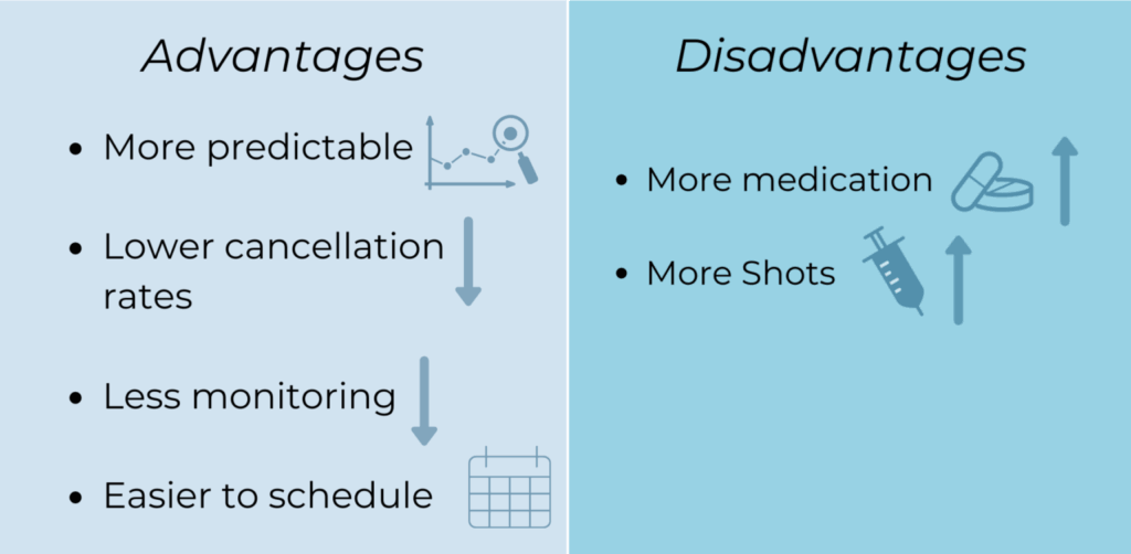 The physician will generally recommend HRT FET to patients who have irregular cycles or those who wish to have more control over the timing of their transfer.